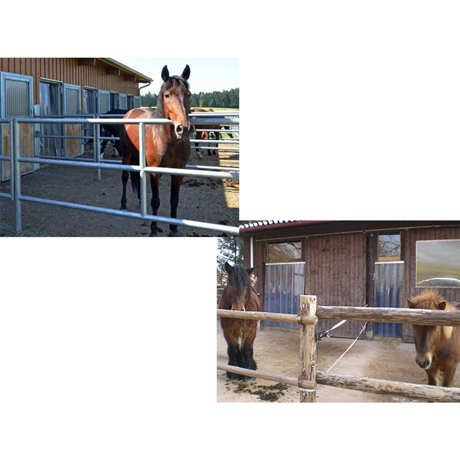 PVC-Streifenvorhang Bausatz für eine maximale Breite von ca.3,00 m bei einer Überlappung von ca. 5,0 cm (1 Haken) bzw. ca. 2,50 m Breite bei einer Überlappung von ca. 10,0 cm (2 Haken). Die Vorhangbreite kann jederzeit weiter reduziert werden, indem einzelne Streifen um weitere Haken überlappt werden.